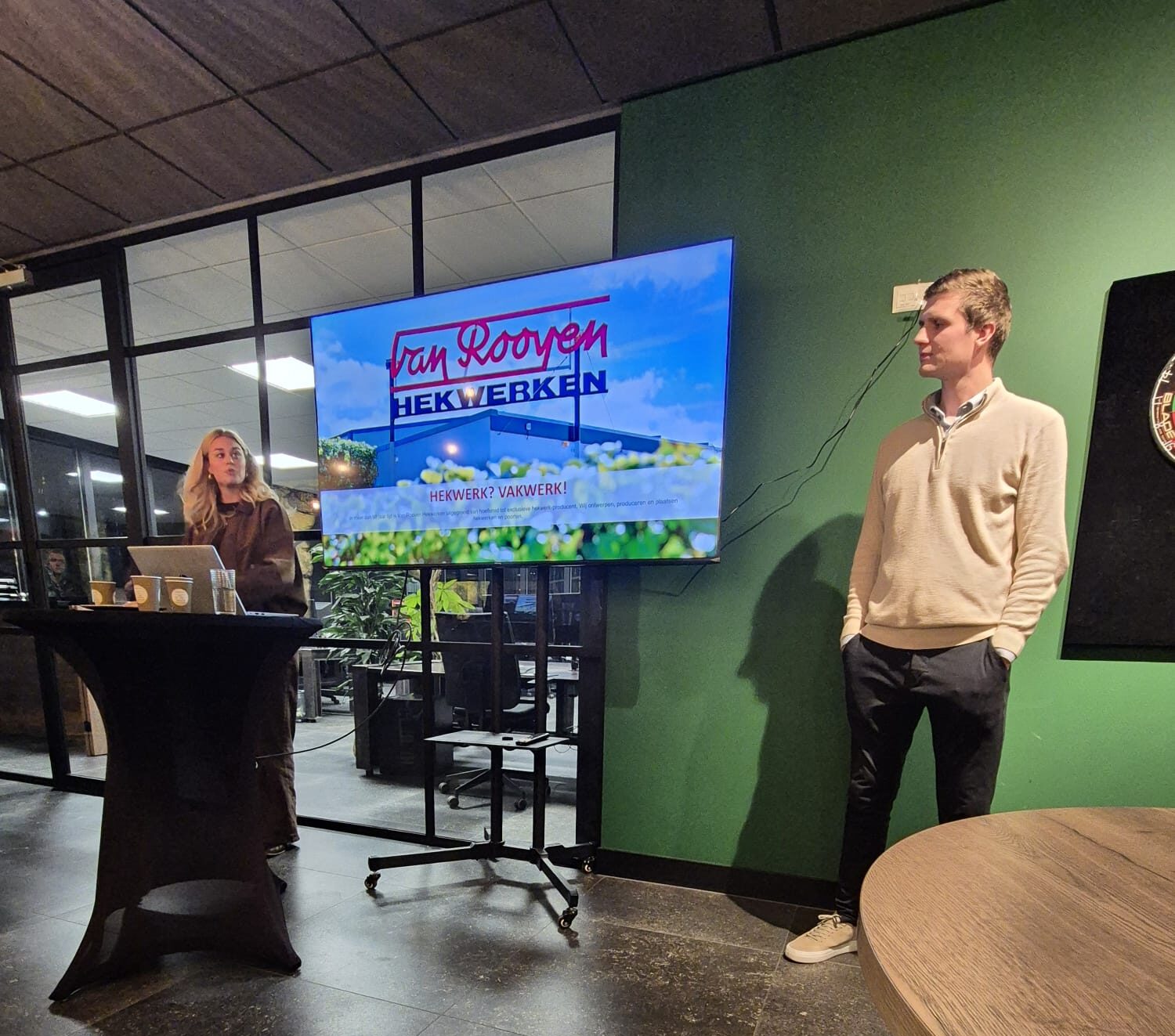Onze gastvrouw (Marie-Louise) en -heer (Rob) van Rooijen JR namen de aftrap voor rekening. Op een professionele en leuke wijze werd met ondersteuning van een heldere bedrijfsvideo de presentatie gestart. De drie kernwaarden: vakmanschap, kwaliteit & persoonlijk contact stonden daarbij centraal. Veel wordt geïnvesteerd in de mensen die werkzaam zijn binnen dit familiebedrijf. Stilstaan is geen optie. Innoveren en (duurzaam) doorontwikkelen is een must net zoals veilig werken en waarborgen van kwaliteit.