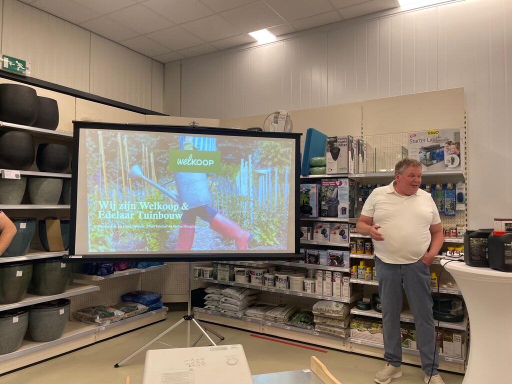 Hans heeft op eigen wijze een presentatie verzorgen over het wel en wee van de grote winkelketen Welkoop en het bedrijf ‘Edelaar Tuinbouw’. De geschiedenis, marketing en ontwikkelingen binnen beide bedrijven zijn daarbij uitgebreid aan bod gekomen.